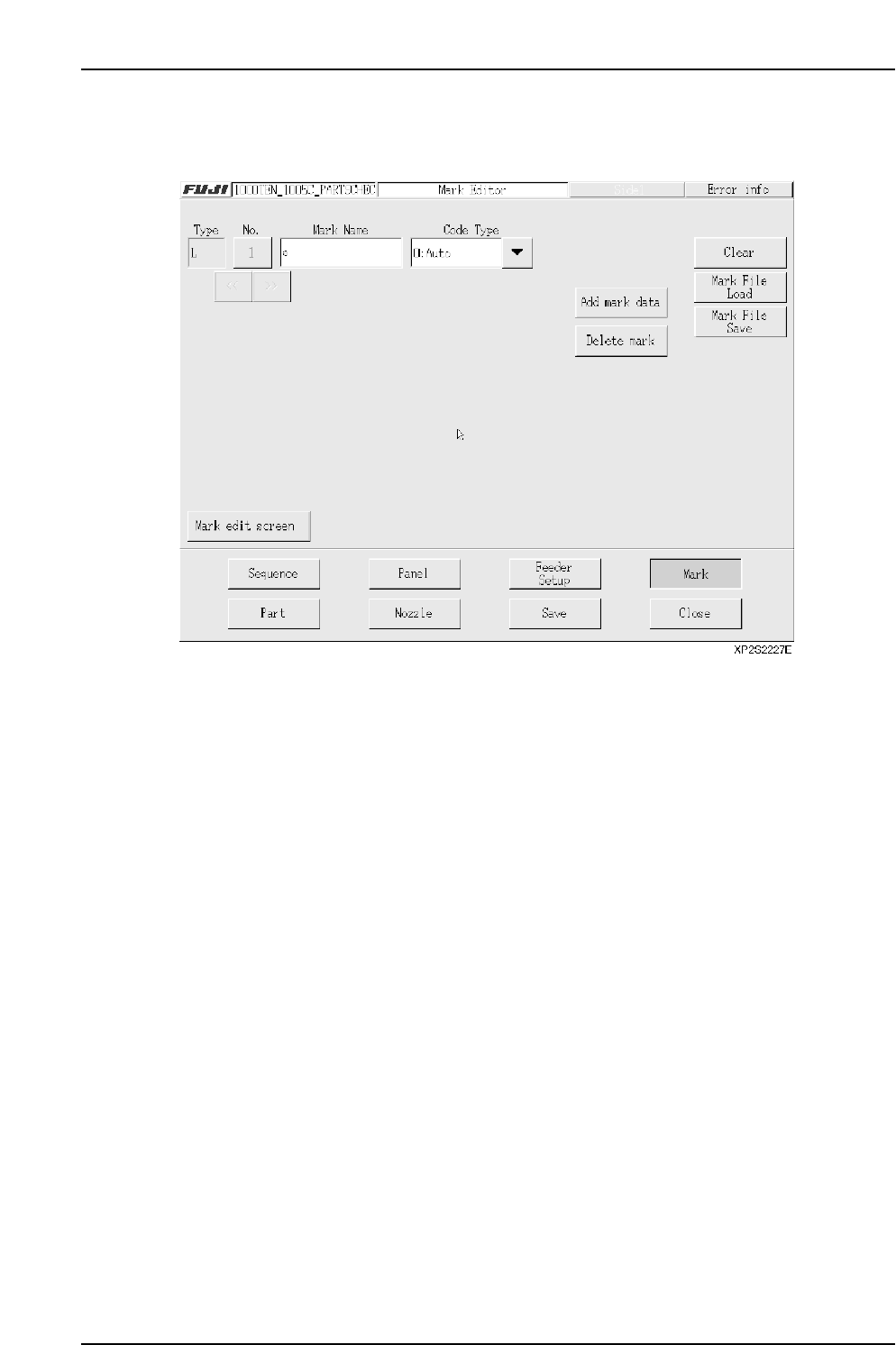 • [Code Type] drop-down list The code type can be selected from the following. • [Add mark data] button When this button is pressed, one vacant panel ID data area is added after the final existing panel ID data being edi…