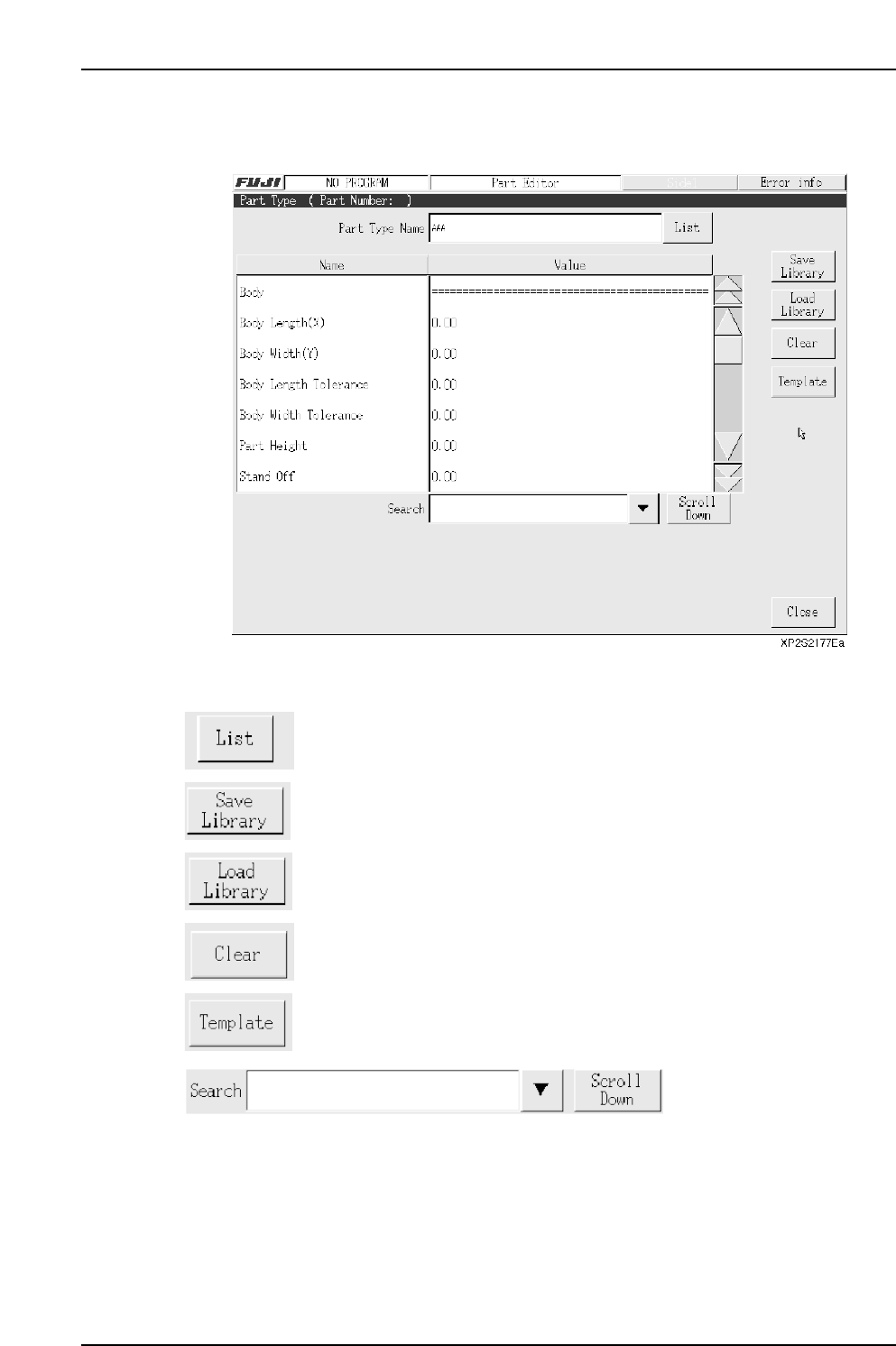 3.6.1 Part T ype Editing The part type editor is used to set part information. Operation Button Explanations Displays a list of part types used by the production program which is currently opened in the editor. Saves edi…