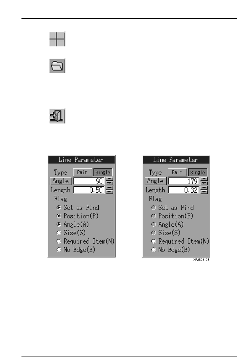 [Angle] button When this button is pressed, a seek line which is perpendicular to the edge can be set. As only single seek lines can be generated by the automatic angle generation function, a single line will be generate…