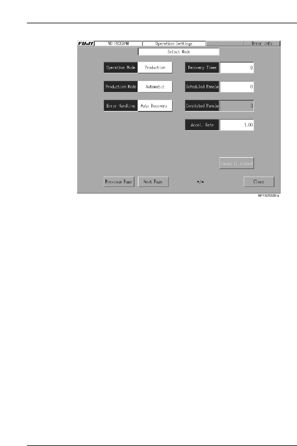 parts error, “Auto Recovery”, “Error Stop” and “Error Pass” which can be changed by