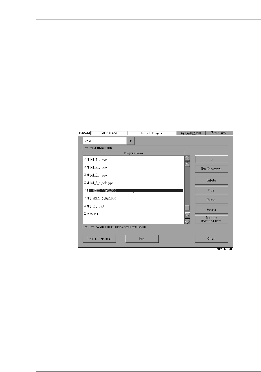Part 2 Chapter 3 Changeover Edition 2.0 2-3-3 XP-142E System Reference 3.1.2 Selecting a Production Program From the [Program] Screen A program can also be loaded from the program menu. Note: This program selection is to…