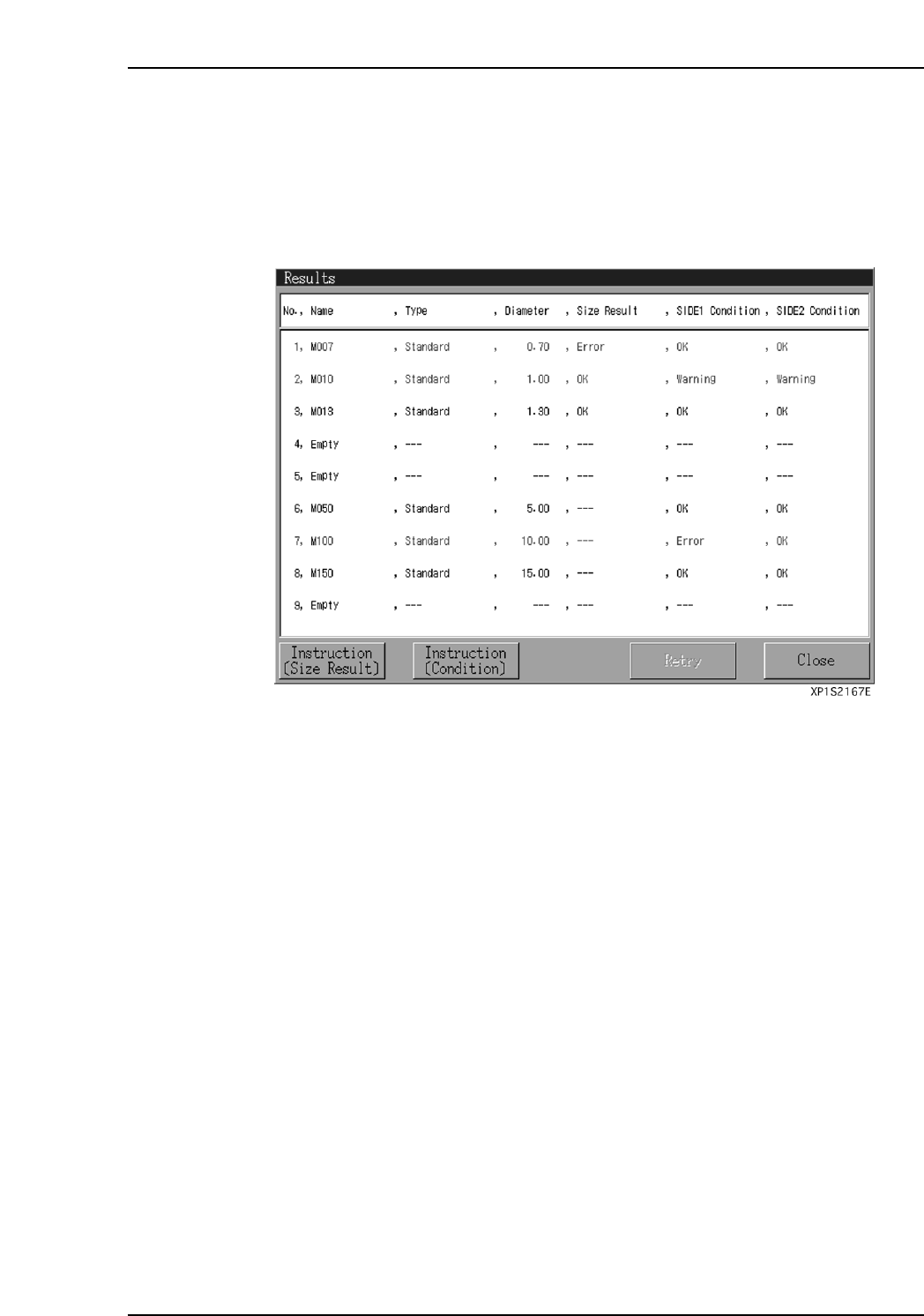 “Size Result” and “Condition” instructions, and correct the error cause.