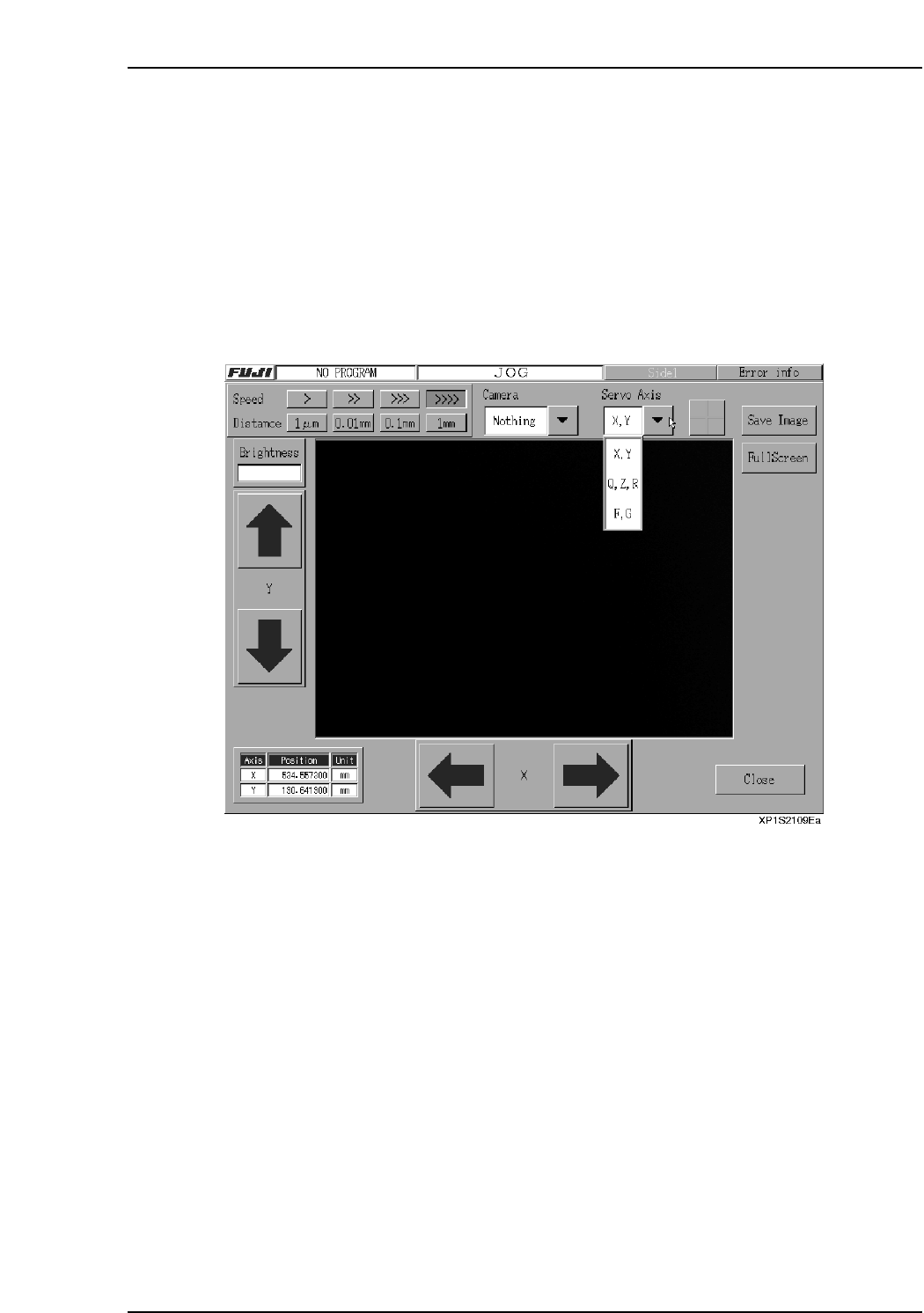 2. Press the [▼] servo axis selection button to select the axis where movement is