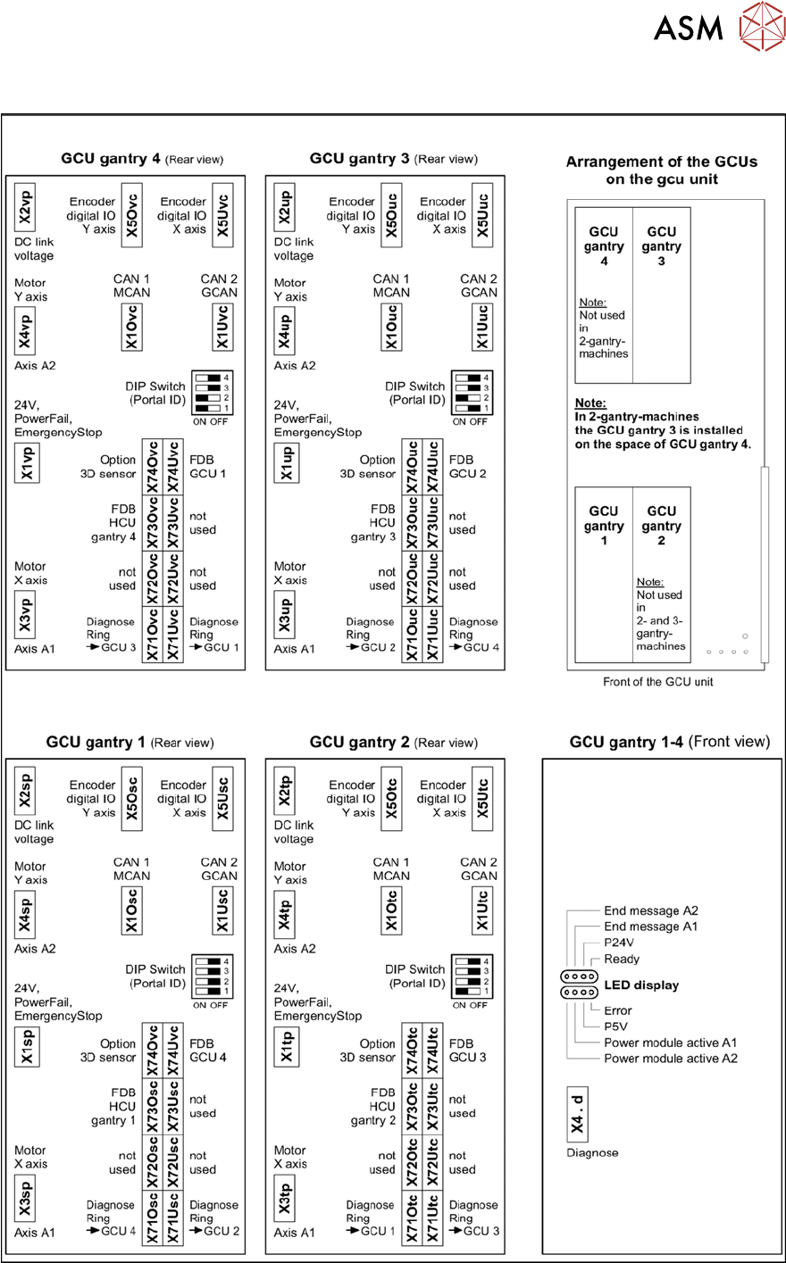 The assignment of GCUs to gantries differs