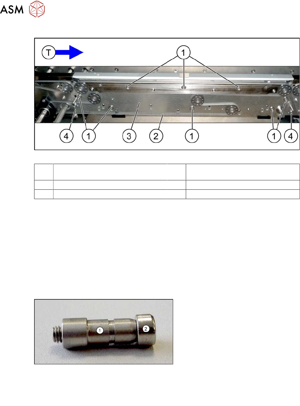 7 Conveyor 7.7 Clamping Plate, Clamping Rails and Belt Guidance 256 Service Manual SIPLACE X-Serie S 06/2019 Overview Fig.323: Clamping plate (using example of SIPLACE SX1/SX2) 1 Eight screws fastening the clamping plat…