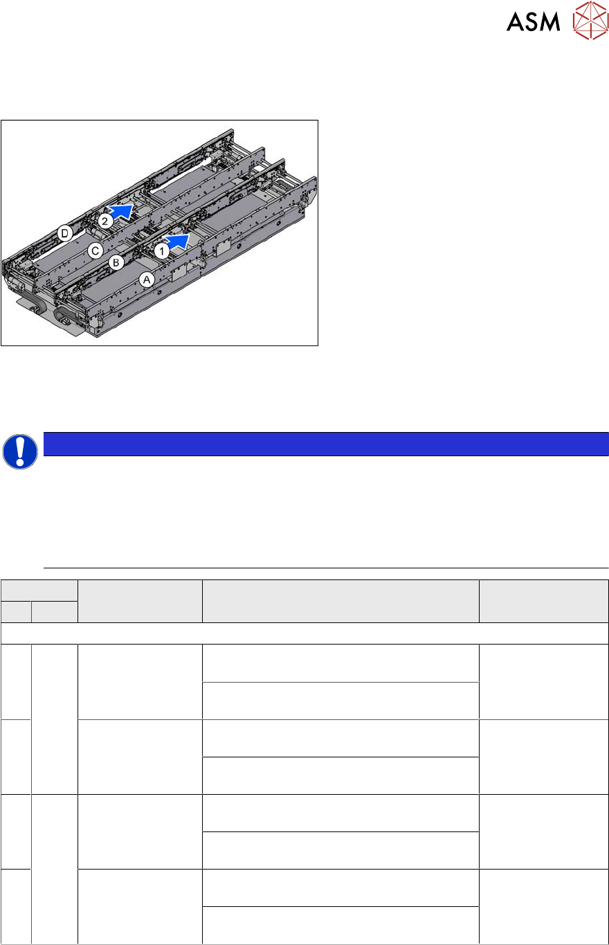 7 Conveyor 7.7 Clamping Plate, Clamping Rails and Belt Guidance 260 Service Manual SIPLACE X-Serie S 06/2019 Side panel Input area PA1 Center PA1 DC SC SIPLACE X4i S A Fixed, right [03093894-xx] Belt guidance A/C PA1 IC …