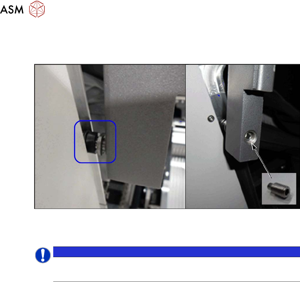 2 Basic Machine 2.3 Guide Rollers on the Covers 30 Service Manual SIPLACE X-Serie S 06/2019 Procedure ► To make the work easier, proceed as follows: Dismantle the bottom stop. ► Loosen the screwed fixture on the roller (…