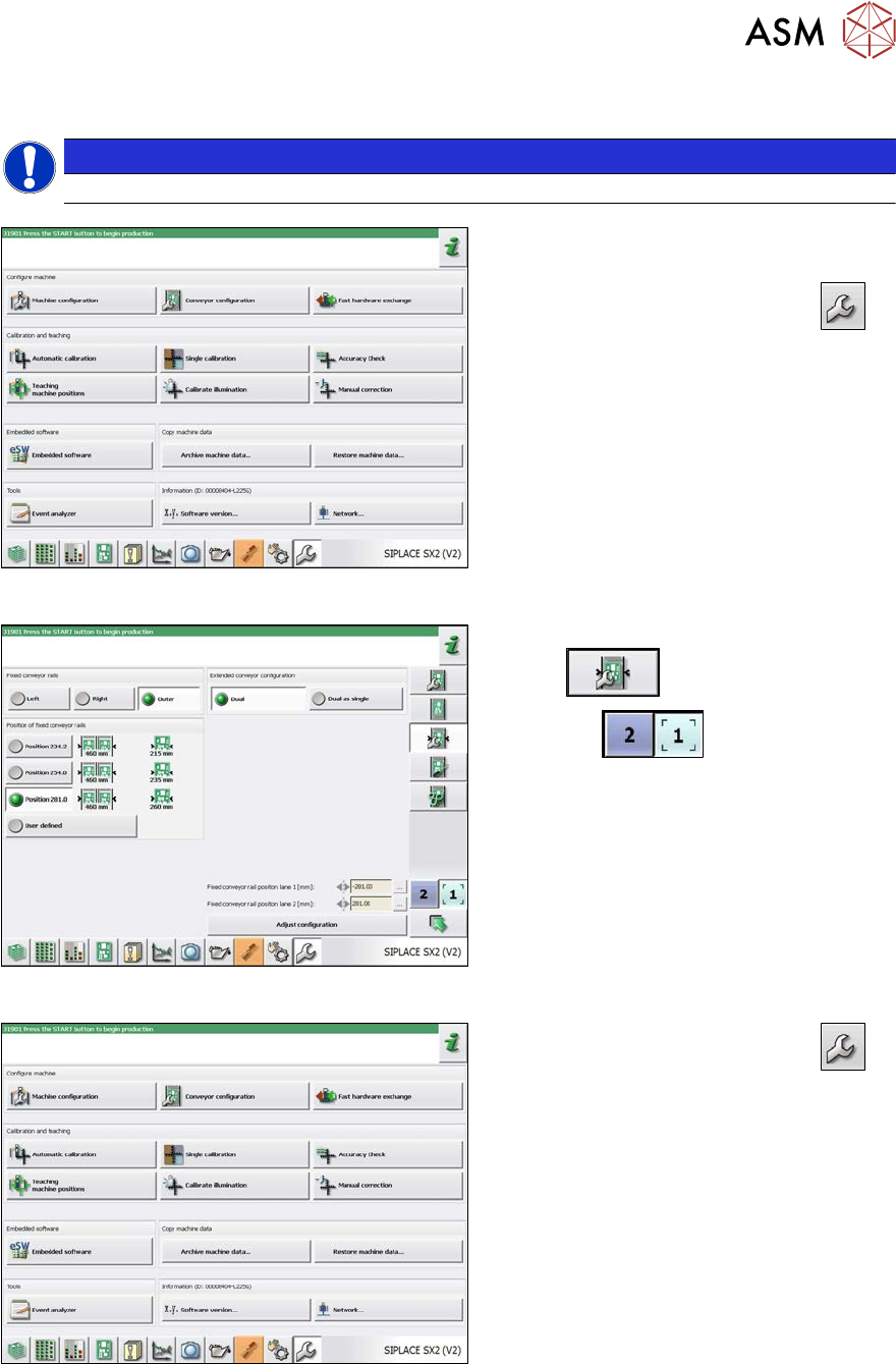 ► Use the software to move the fixed conveyor side. This ensures that the fixed conveyor side is