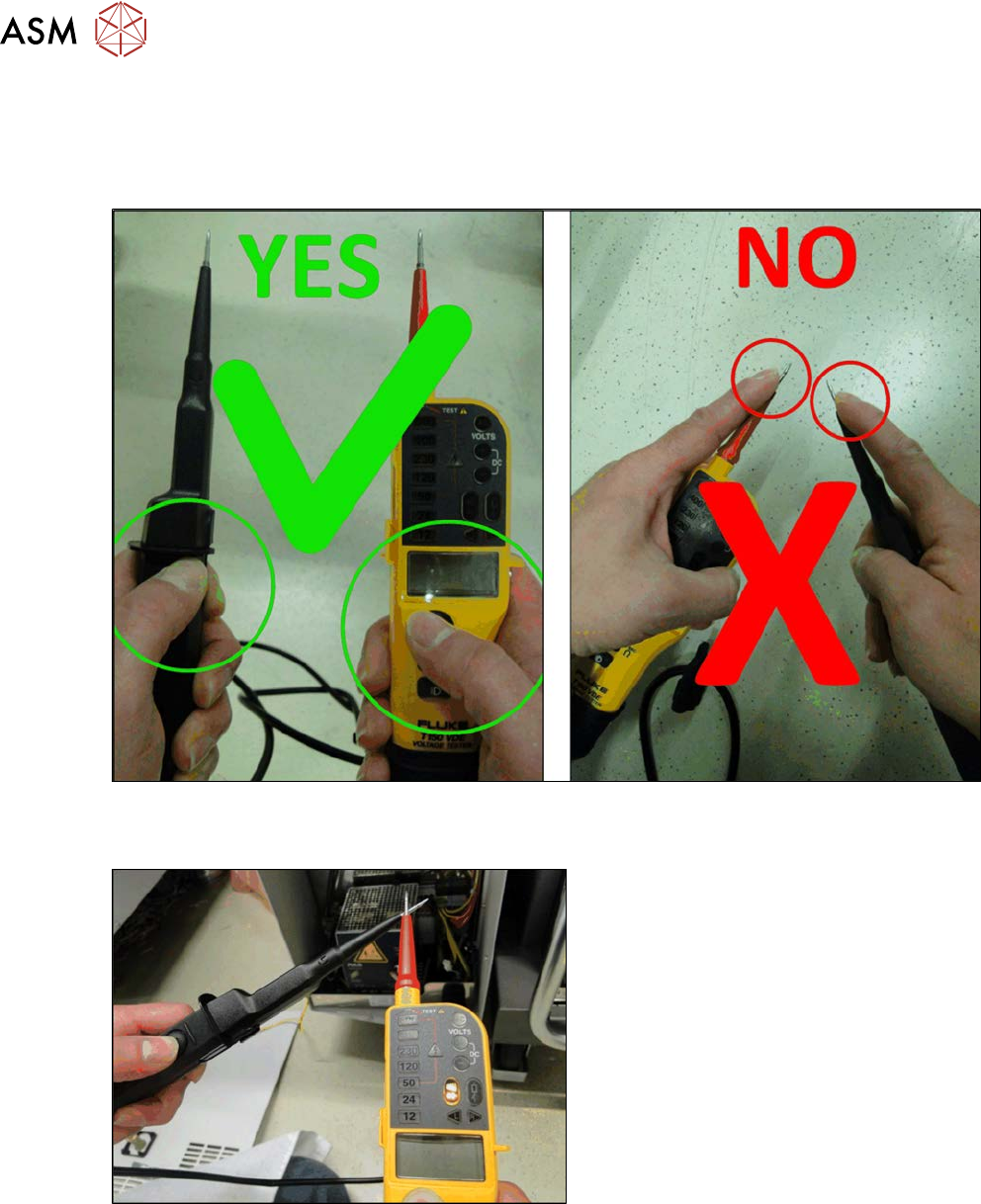 handles) and the test electrodes (testing tips) may not be touched!