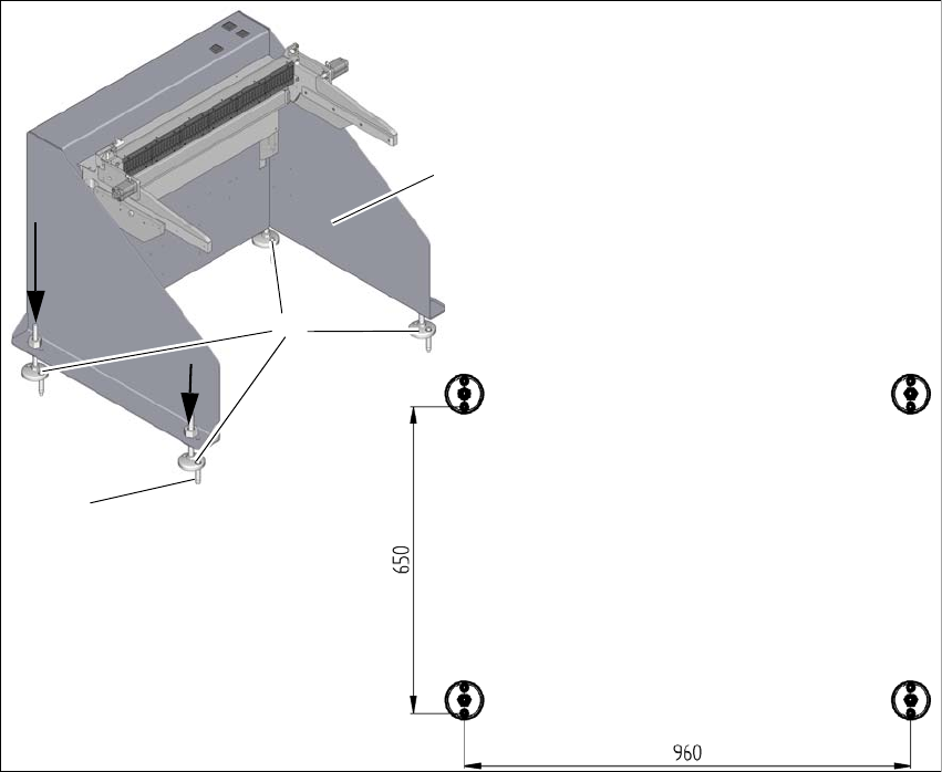 用户手册 SIPLACE SX 元件料车装卸站 3 产品说明 版本 02/2018 3.3 装配和固定装置 103 3.3.2 装配 装卸站通过四个重型锚 TA M, ∅ 12 mm 和其他固定装置固定到地面上。 3 图 3.3 - 2 固定装置和钻孔图型 (1) 将装卸站 ( 1) 直立放置到要安装并对 齐的位置。 (2) 对齐基座支脚 (2),将支脚中的孔 对准上述铁板中的孔。 (3) 用铅笔或其他适 宜的工具标记基座支脚的前孔。 …