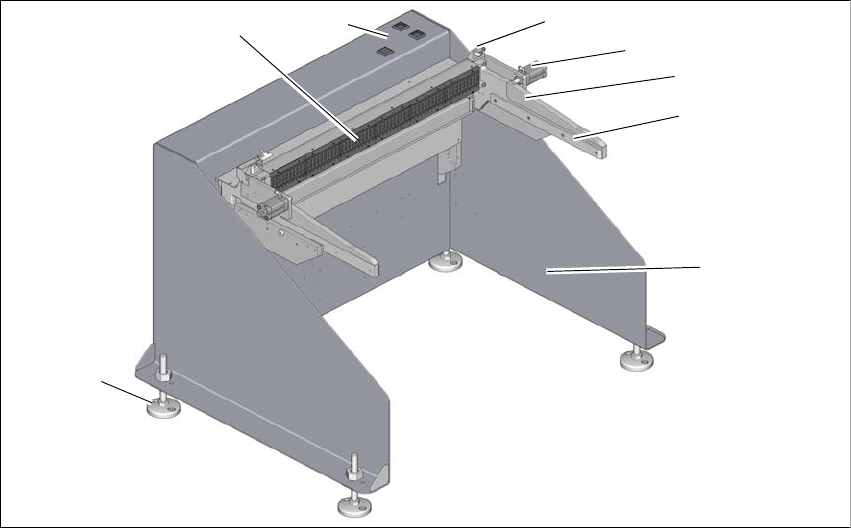 (4) 锁定元件料车的气压缸 (8) 用于固定至底部表面的高度可调支脚