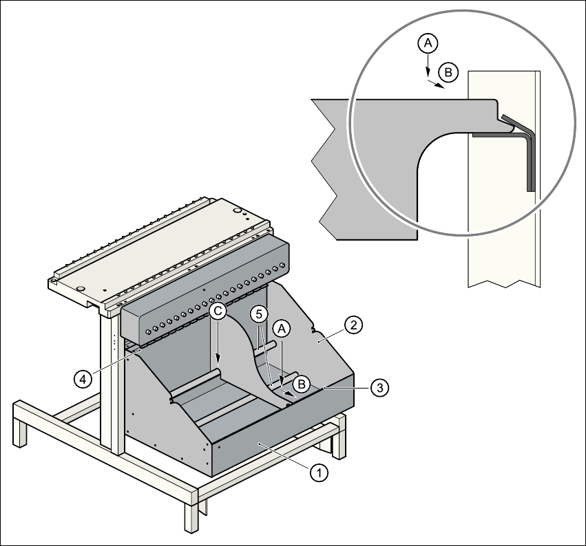 C 將分格板卡在支撐桿 (5) ㆖。