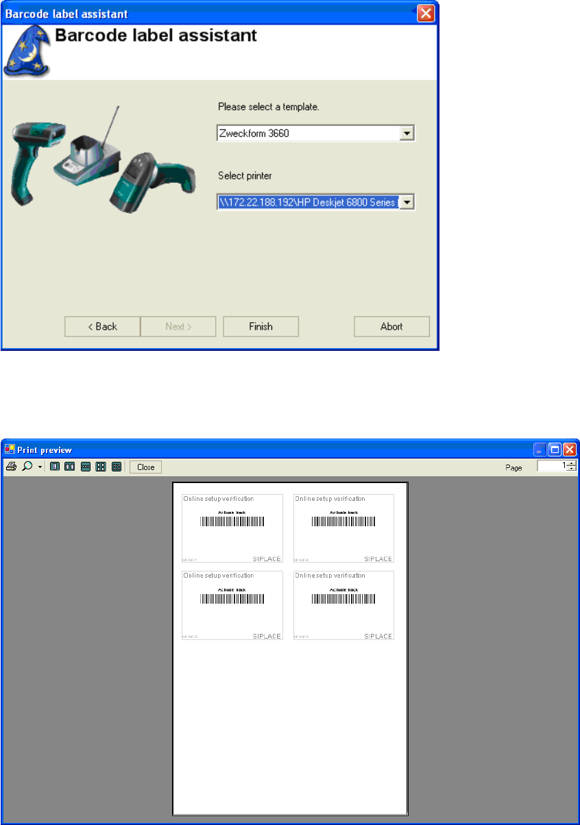 : Select a template and a printer and click on "Finish".