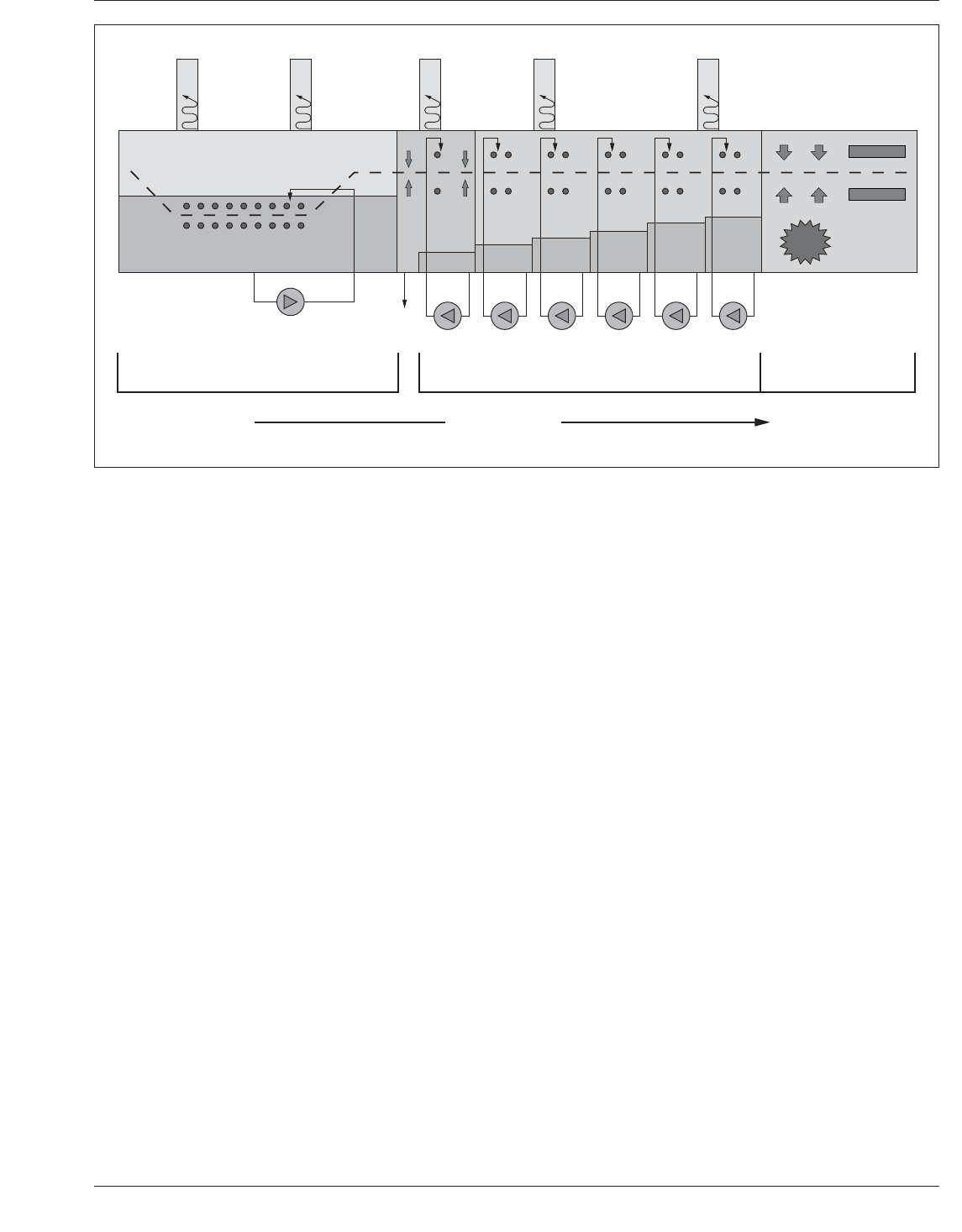 槽。水梯阻碍溶剂流动。污染物的浓度由于稀释在每个编号更高的贮槽而逐渐降低。