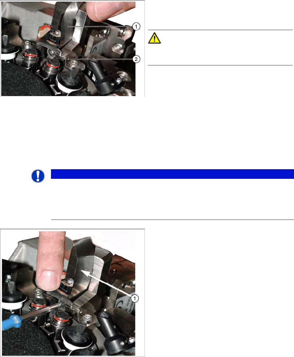 3 Servicearbeiten 3.10 Rachen tauschen und einstellen [03010313-xx] Serviceanleitung SIPLACE C&P20, C&P20A, C&P20M 37 Führen S ie wie fo lgt die Einstellu ng des Rach ens durch: ► Achten Sie darauf, da ss die…