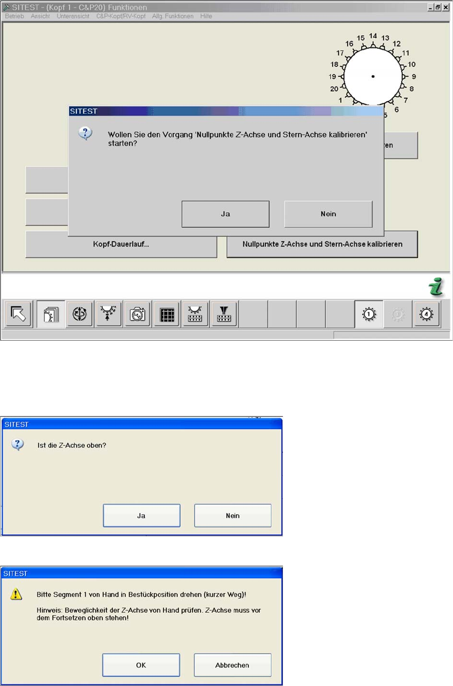 Die Funktion Nullpunkt Z-Achse und Stern-Achse kalibrieren sollte nach Servicearbeiten am