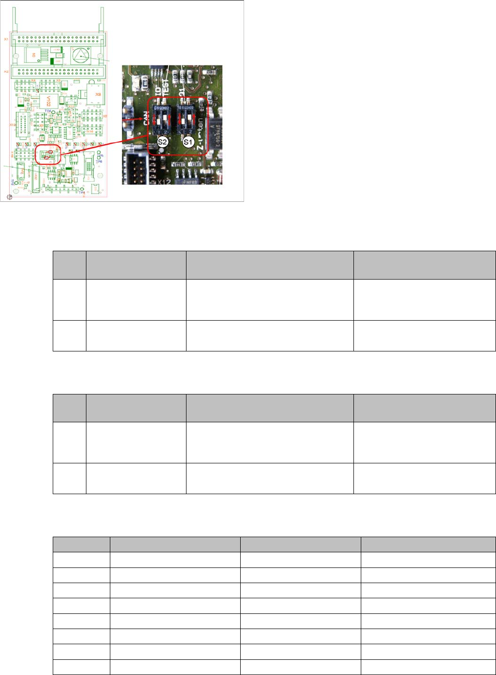 6 Platinenbeschreibung 6.1 Zwischenverteiler C&P2 0 [03002942-xx] 64 Serviceanleitung SIPLACE C&P20, C&P20A, C&P20M DIP-Schalter S1 [03002942-09] DIP-Schalter S2 [03002942-09] Weitere Informationen: V17 Y…