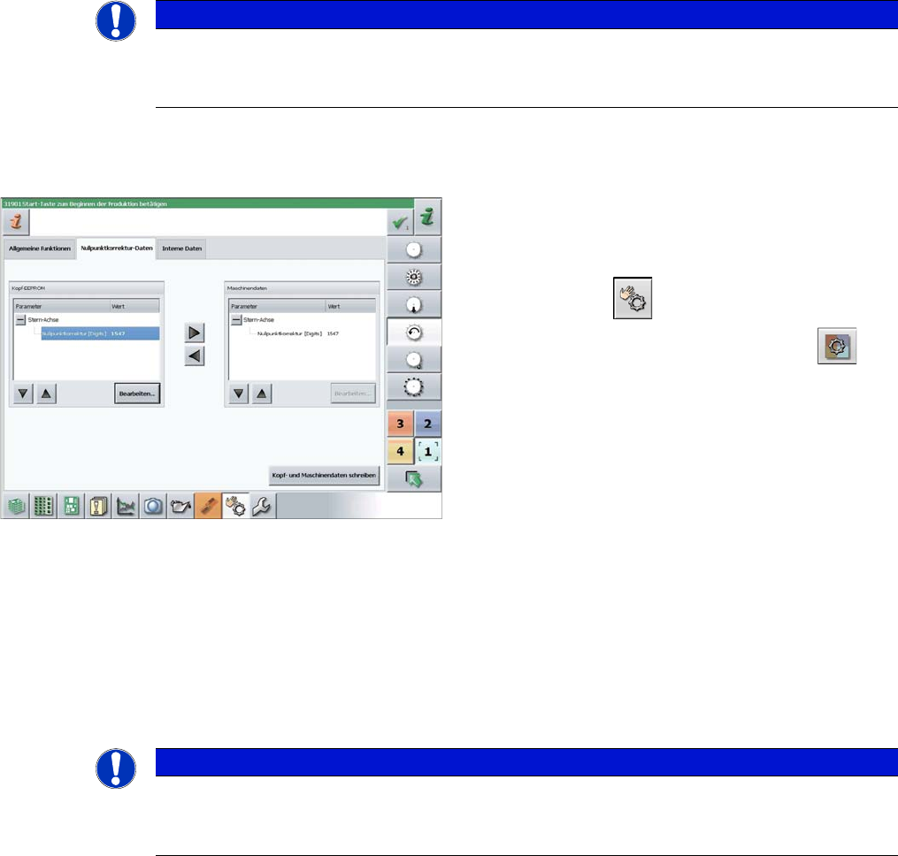 5.4 Nullpunktkorrektur für Stern- und Z-Achse 5.4.1 Kopfspezifische Daten nach manuellem Kopftausch in die Maschinendaten