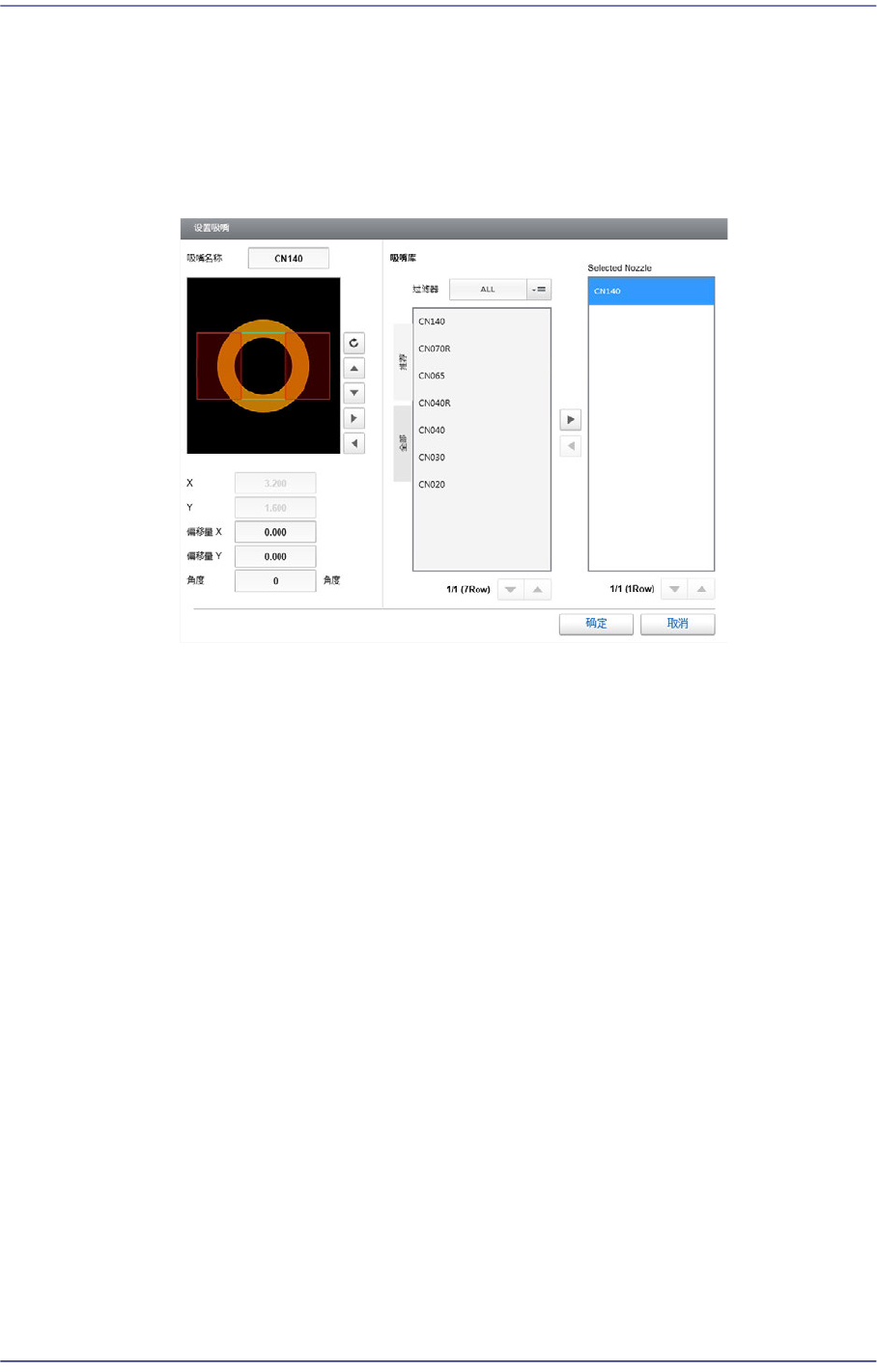 如果吸嘴列表上没有适当的吸嘴,可以单击该按钮后选择适当的吸嘴。