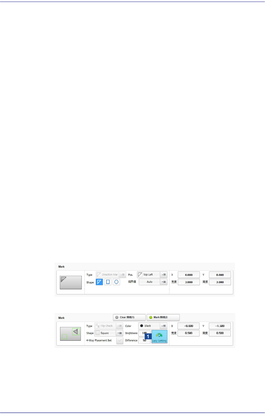 7-36 Multi-Functional Placer SM482(L) PLUS Administrator’s Guide < 算法 > 选择框 请选择进行角部检查时所使用的视觉算法。 Fine 需要精密地识别角部的界线时选择。 建 议 使用该方式。 Rough 不检查角部界线的数值时选择。 不建议 使 用该方式。 < 分数 > 编辑框 分数是一种经过数值化的值, 该值表明视觉系统所识别的元…