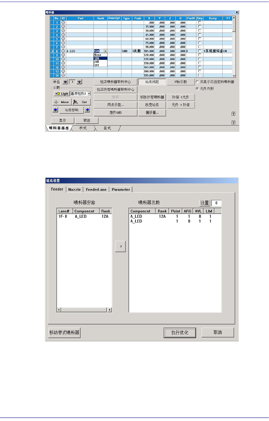 用该Rank元件的喂料器,使用优化程序时也需要另外设定该Rank的喂料器后再