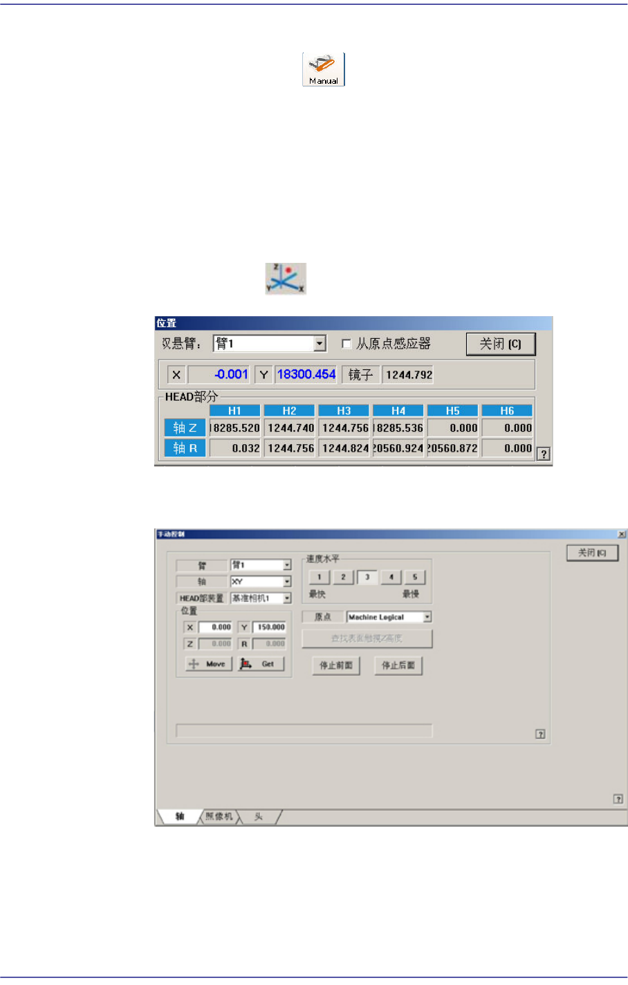 点击此按钮与图标菜单中选择 图标拥有相同功能,执行 “ 手动控制” 对话