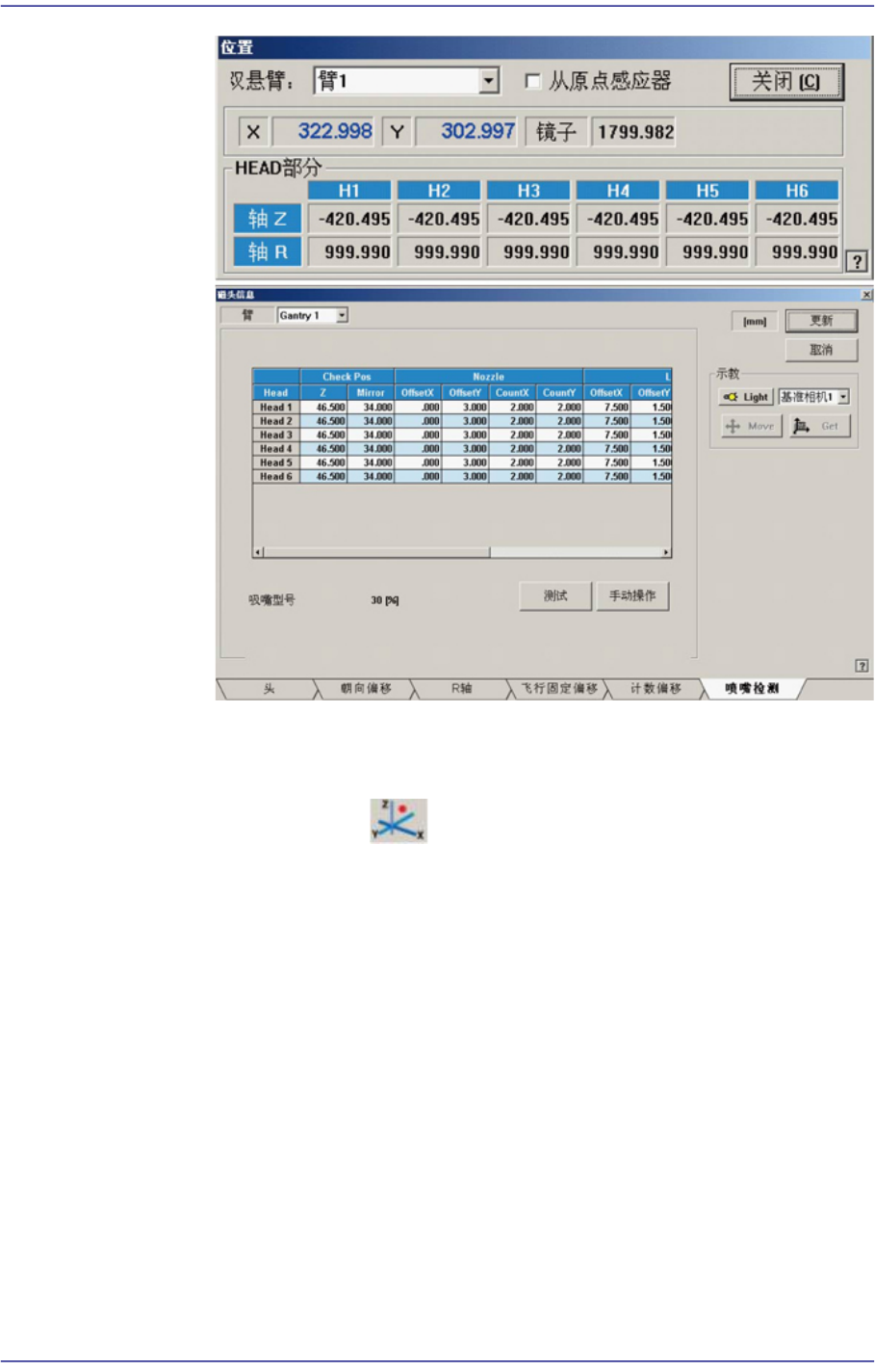 2) 在Nozzle Check TAP对话框单击<手动操作>键,执行“手动控制”对话