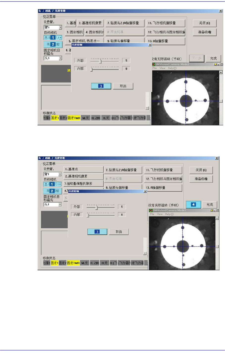 6. 正常完成Calibration次序则如下图显示结果值。另外显示 “基准相机偏移标准完
