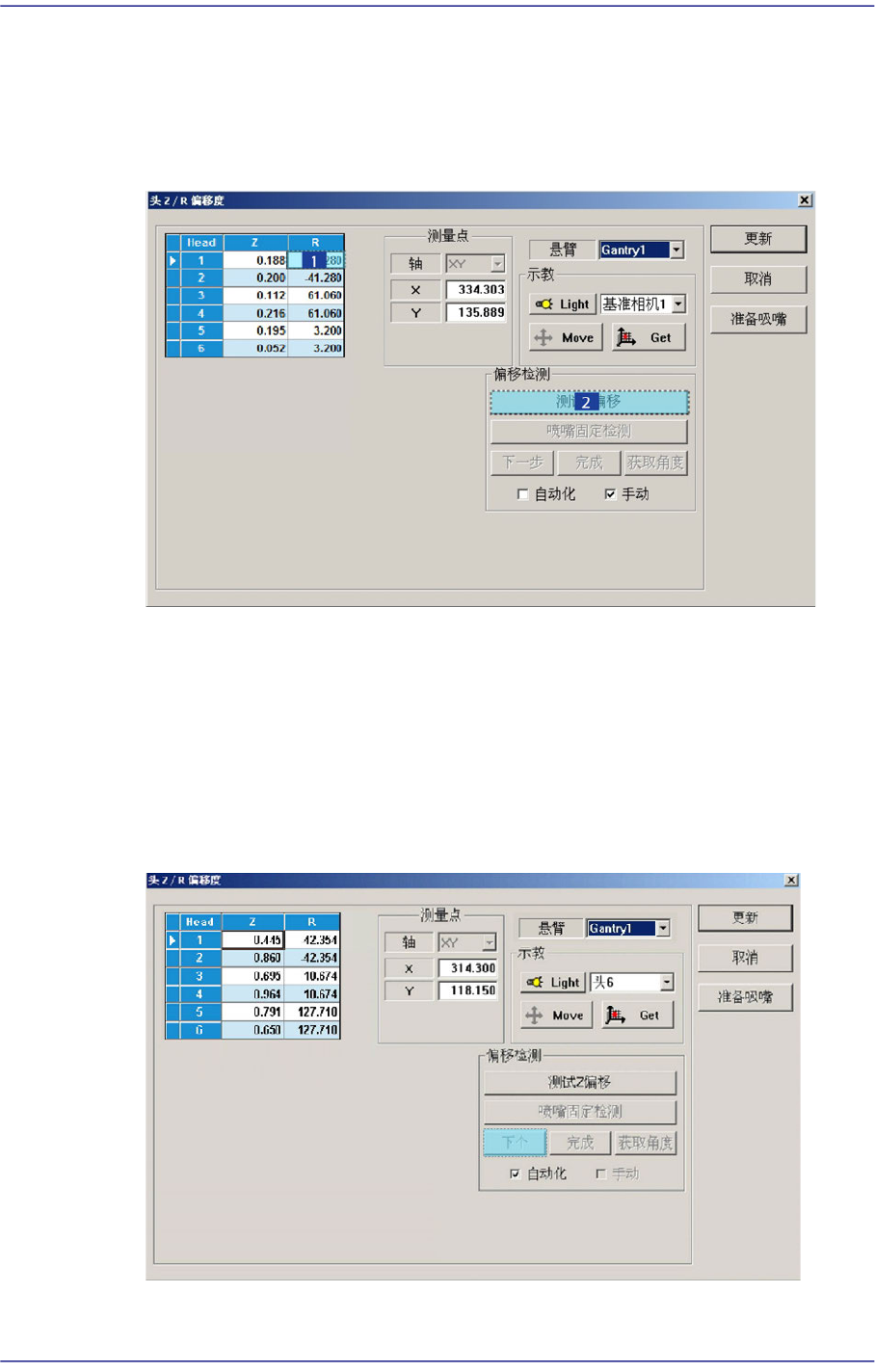 到Head6依次自动下降Spindle的同时执行校正。