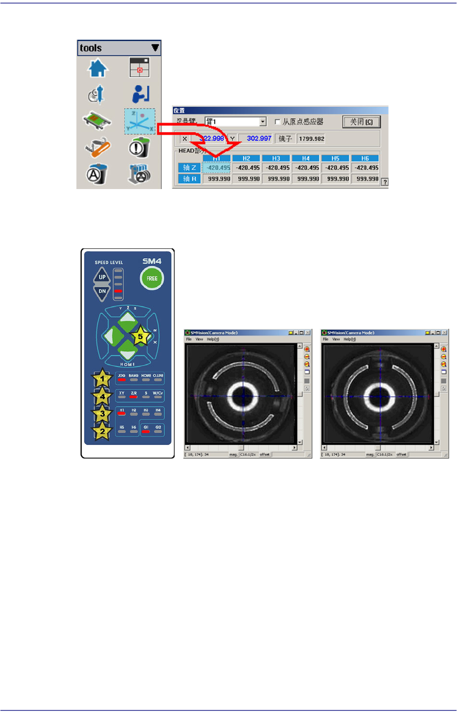 机上看见Head吸嘴支撑架,把Spindle上升到可以识别部件的高度后,为了关闭