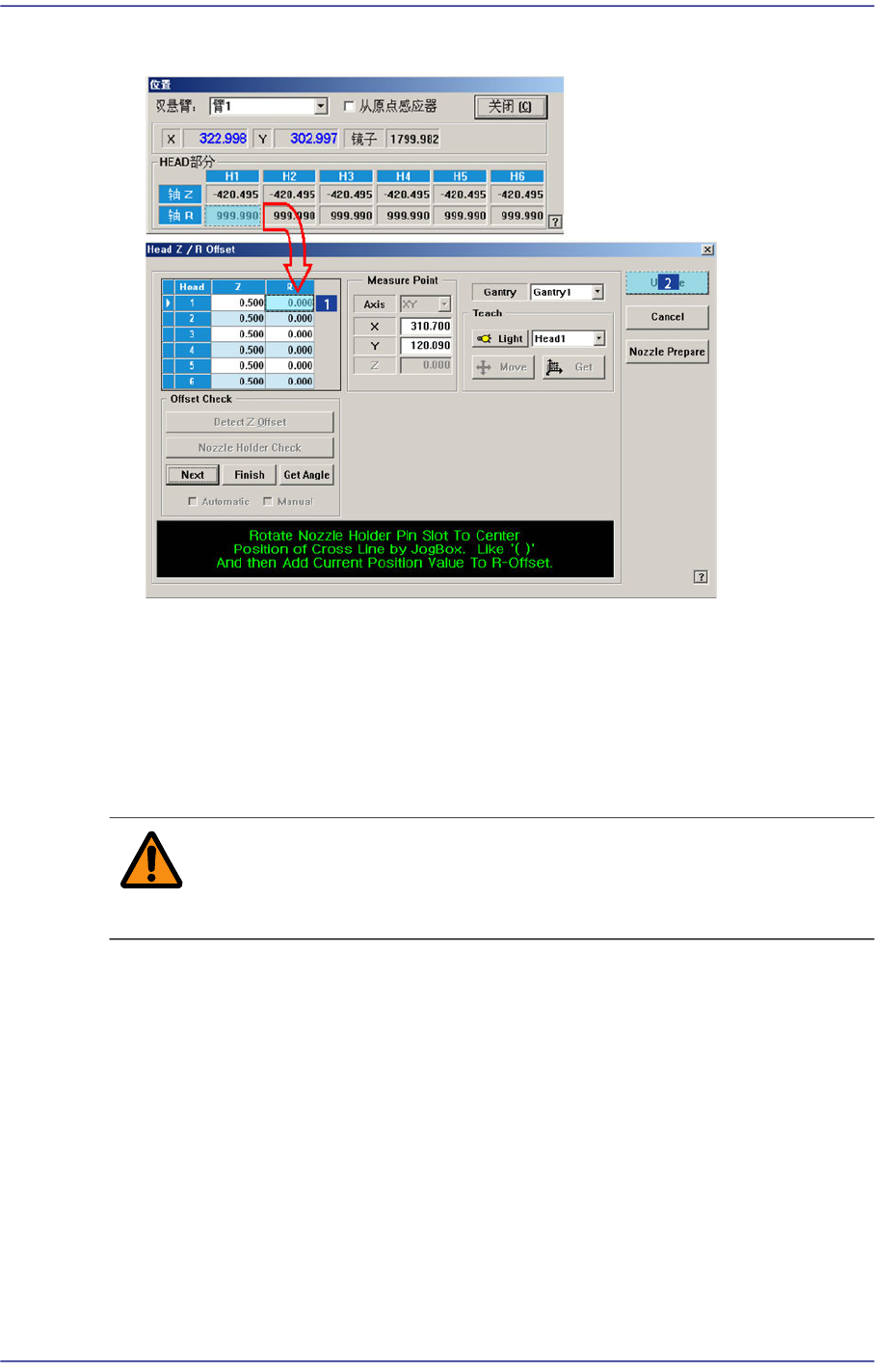 7. 此时输入所要适用的R轴<当前位置>值并进行升级。