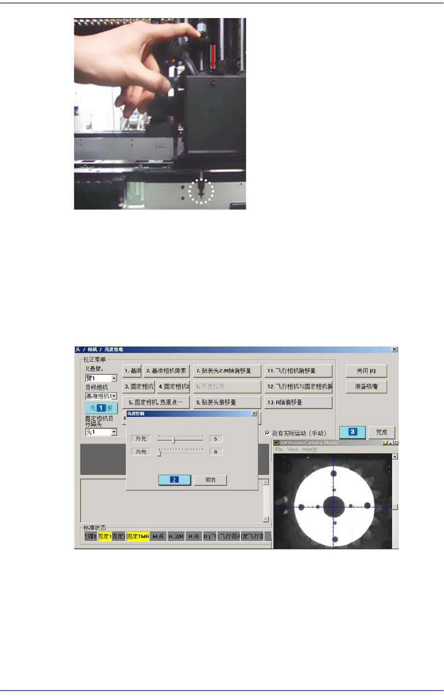 亮度控制”对话框中’SMVision’窗口显示的Calibration Tool上的Ficucial Mark明