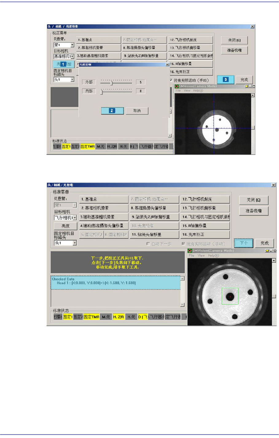 CNT20 吸嘴上的 Fiducial Mark明显为止调整照明亮度后点击<下个>按钮。