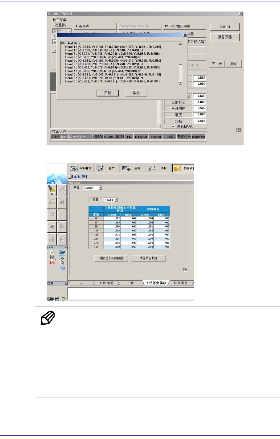 14-70 Multi-Functional Placer SM482(L) PLUS Administrator’s Guide 1 1. 结果值可在 Fly-Fix Offset 对话框中确认。 备 注 Fly to Fix Offse t 的校正基准值如下。 Of fset X : -0.050 ~ 0.050(mm) Of fset Y : -0.050 ~ 0.050(mm) Fly Runout Of fset 的校…