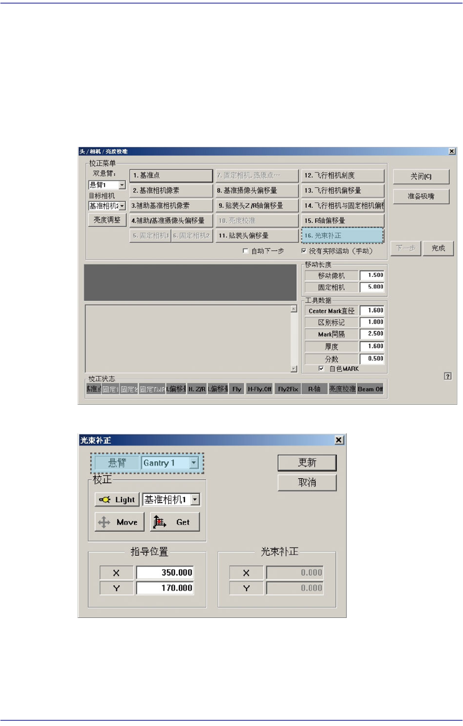 10. 在<Gantry>组合框选择Gantry2后,按照和Gantry1相同的方式实行校准。
