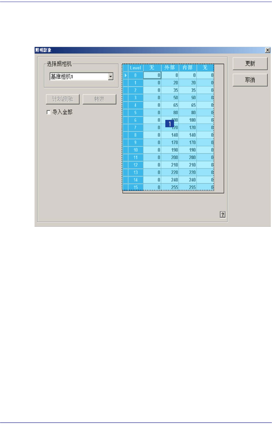 只有选择固定相机的情况时才被激活。 在最高值4096 范围内输入各照明阶