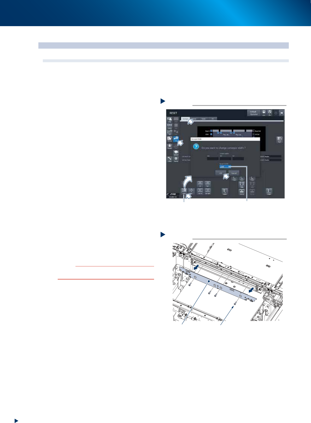 1. Press the [Conveyor width] button on the