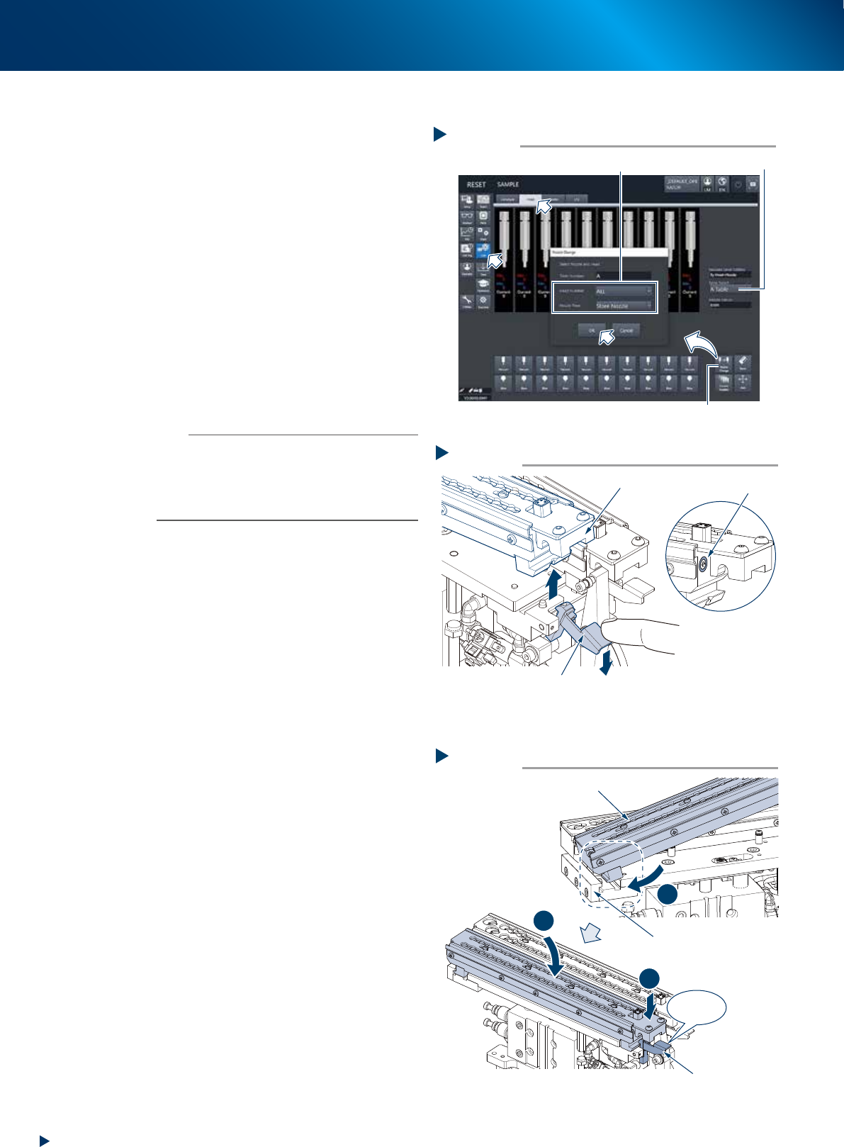 When the nozzles are removed from head or nozzle station, they should be returned to their original position.
