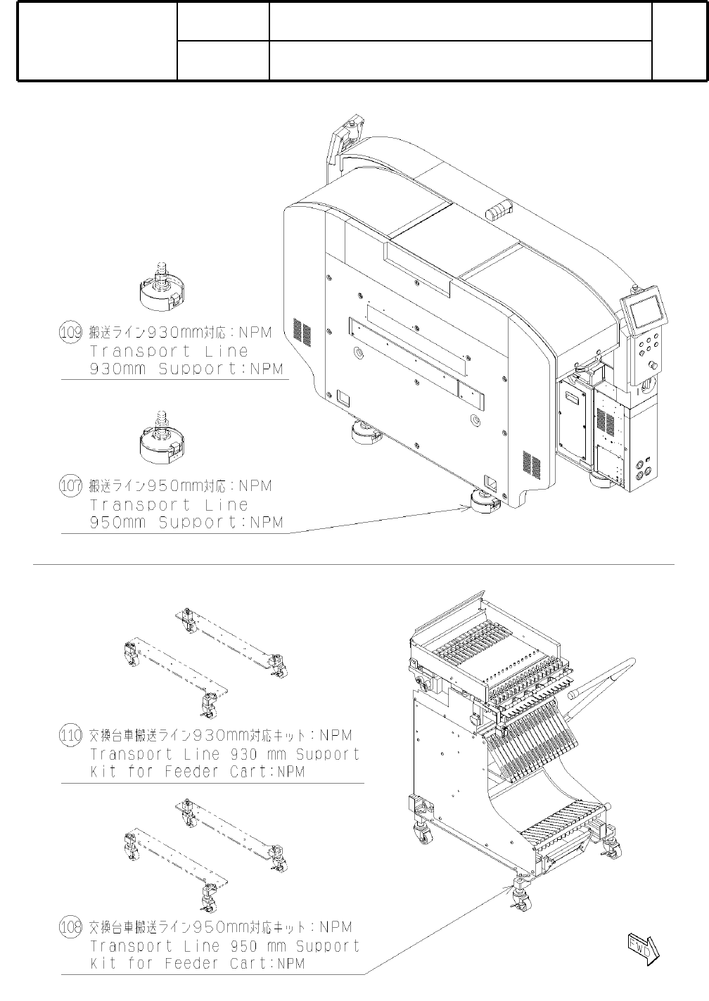 交換台車搬送ライン950mm対応キット:NPM