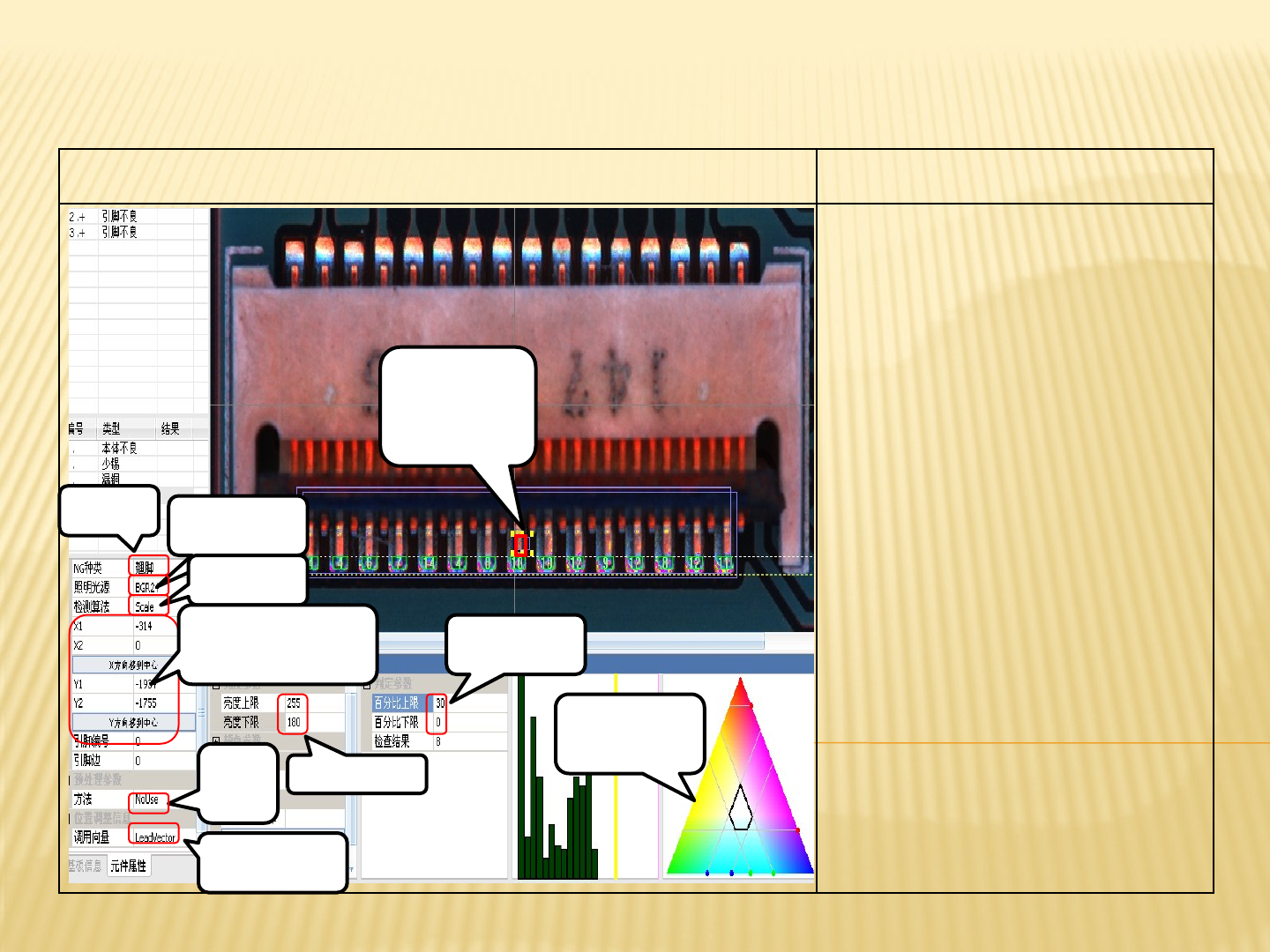 引脚不良连锡的AOI测试图及参数讲解 引脚不良连锡的标准参数