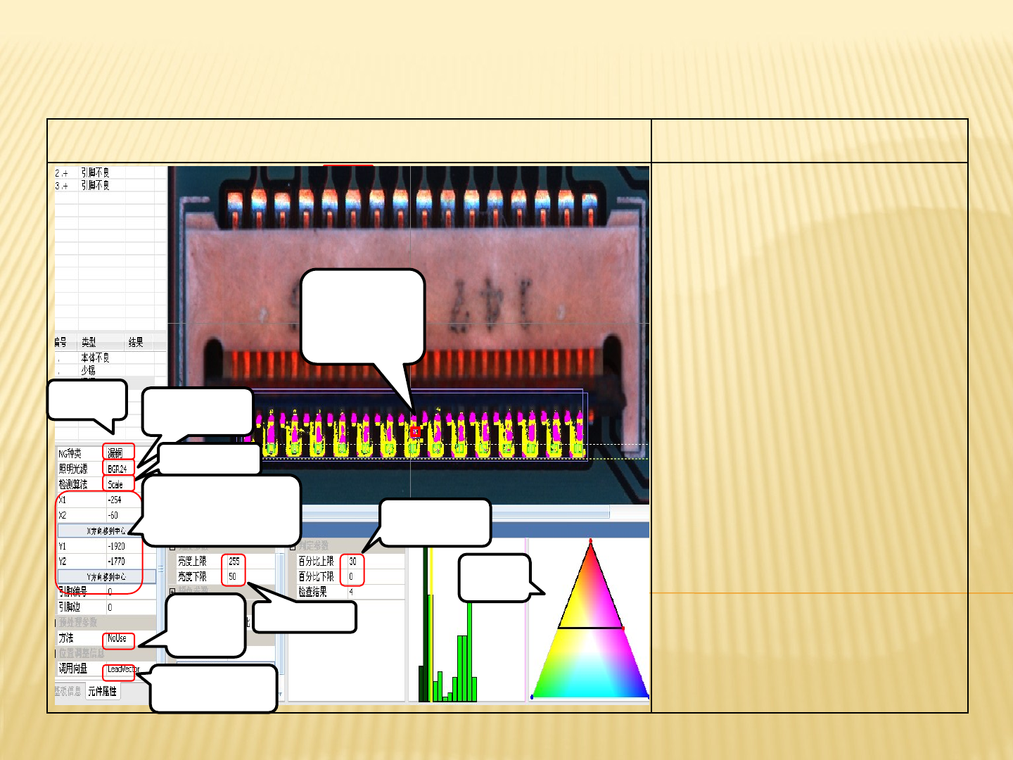 引脚不良漏铜的AOI测试图及参数讲解 引脚不良漏铜的标准参数
