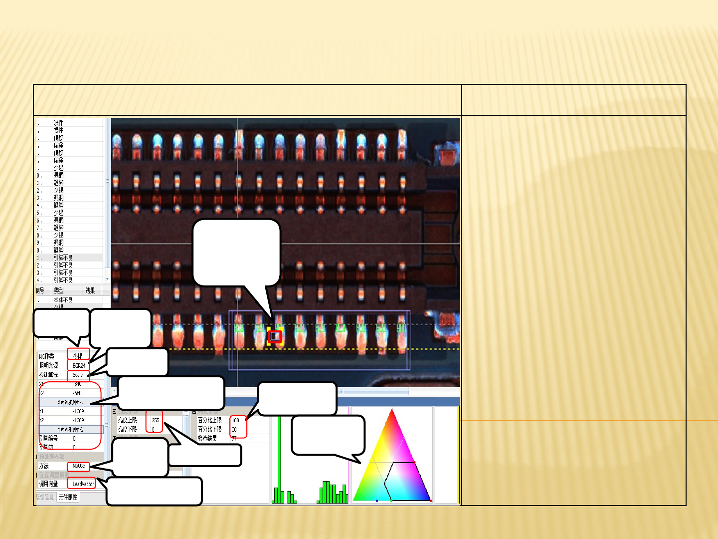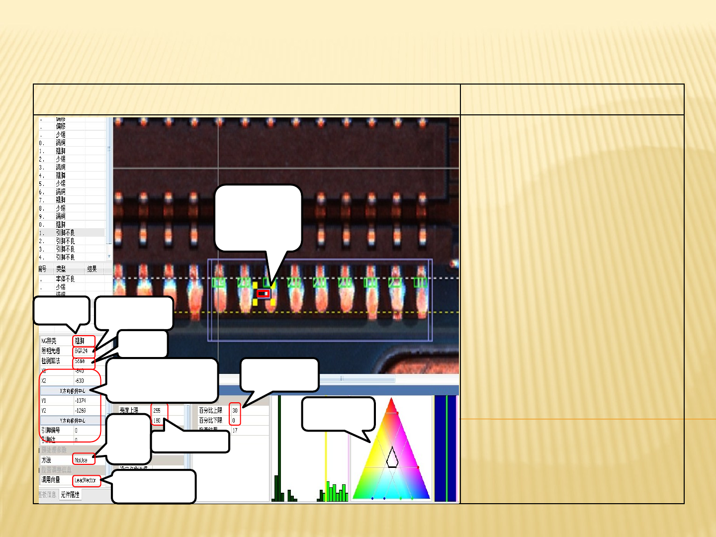 引脚不良漏铜的AOI测试图及参数讲解 引脚不良漏铜的标准参数