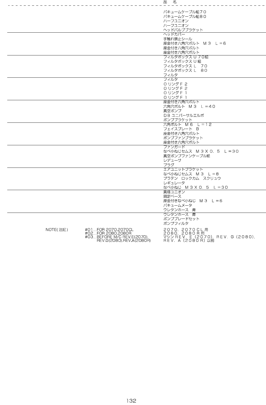 - - REF.NO NOT E P A RT NO D E S C R I P T I O N Q ty 1 #01 400-61126 V ACUU M CA B L E ASM 70 1 2 #02 400-61127 V ACUU M CA B L E ASM 80 1 3 #01 PJ-3010405 - 05 H ALF UNION 6 4 #02 PJ-3010405 - 05 H ALF UNION 7 5 40 0…