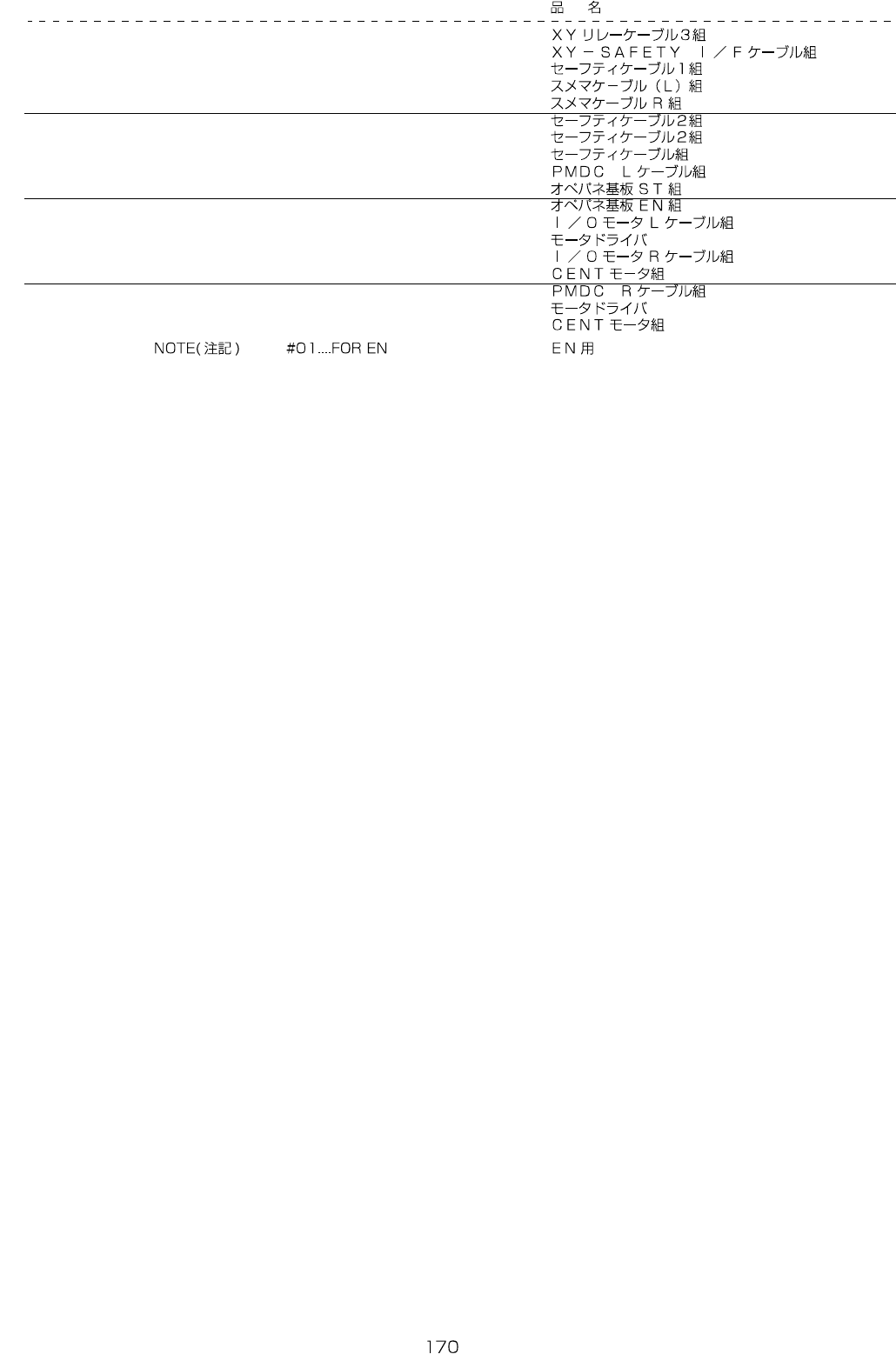 - - RE F .NO N O TE PART NO D E S C R I P T I O N Q t y 1 400-44847 XY RELAY C A BLE 3 A S M 1 2 400-45444 XY-SAFET Y I/F CAB LE ASM 1 3 400-45268 SAF ETY CABLE1 ASM 1 4 E9378- 72 9- 0A0 S MEMA C ABLE (L) ASM. 1 5 400-…