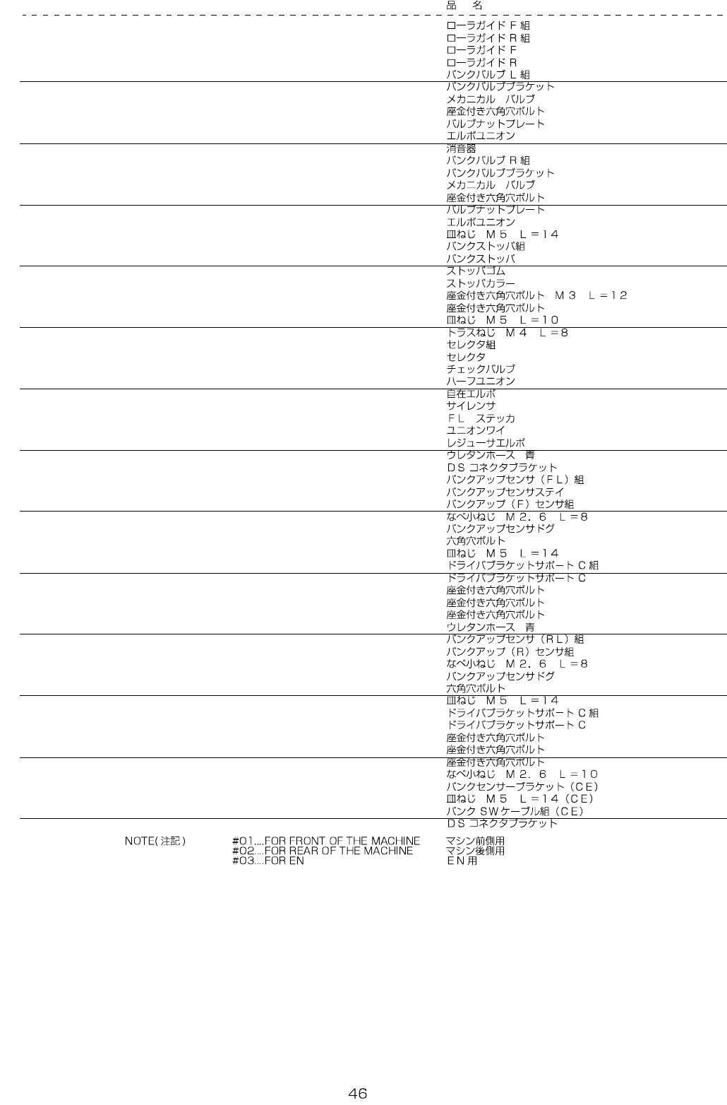 REF.NO NOTE PART NO D E S C R I P T I O N Qty
