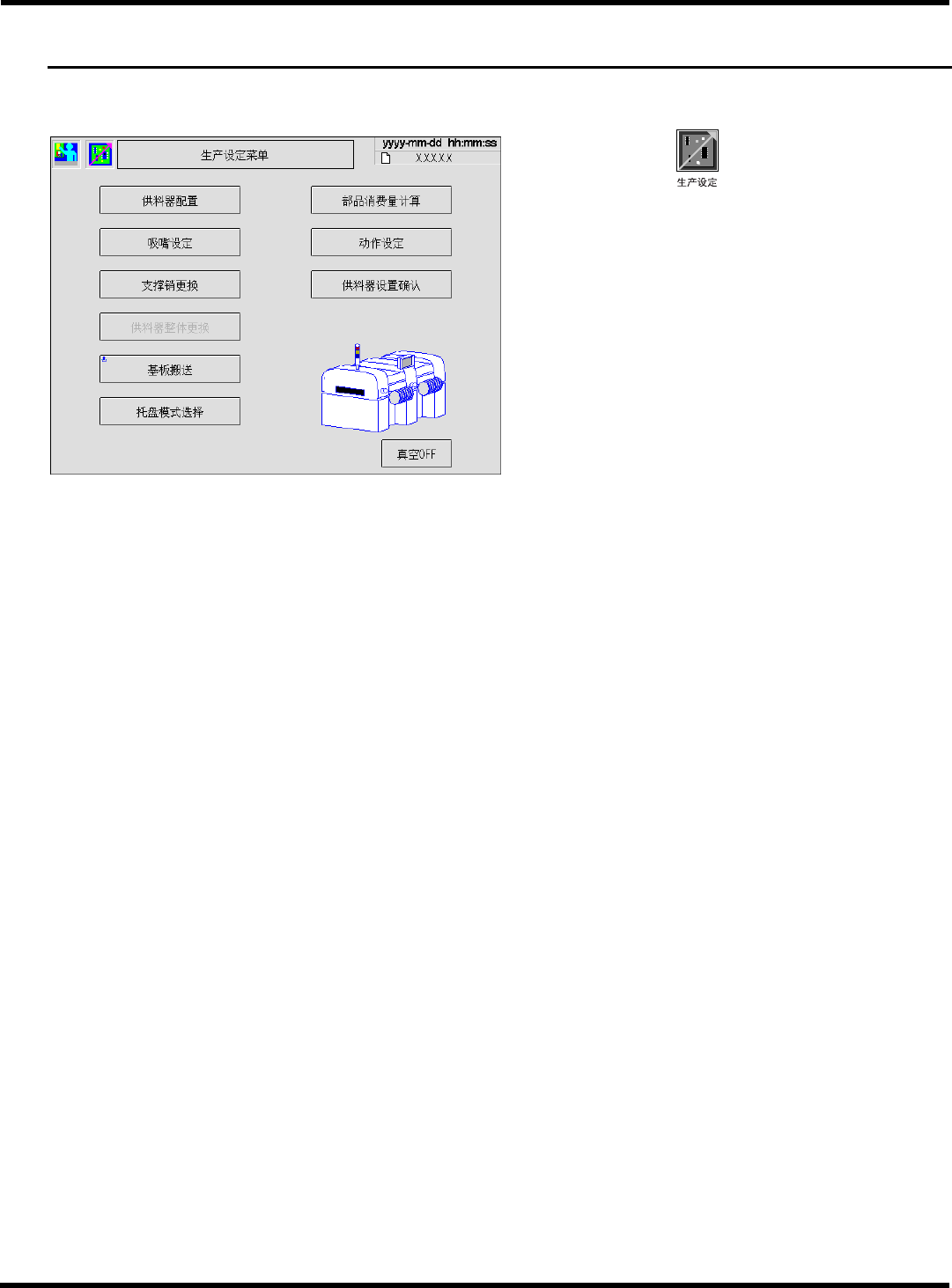 CM101-D 参考手册 2.2 生产设定 Page 2-6 2.2.1 供料器配置 可以确认哪一供料器地 址上载有哪一元件。 首先请确认配置在工作 台上的供料器状态。 ∗ 按照供料器地址顺序, 显示各供料器的元件信息。 根据占有状况,可以一目了 然地知道供料器工 作台上的哪一供料器地 址在使用中。也显示各卷盘 的元件余数和压紧胶带量。 ∗ 选择要确认的供料器工 作台 。 a. [ 编带切断 ] 按此按钮切断编带。 b. [ 全部复…