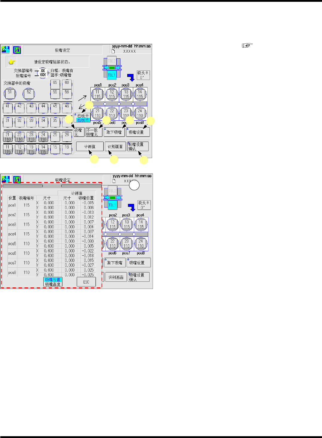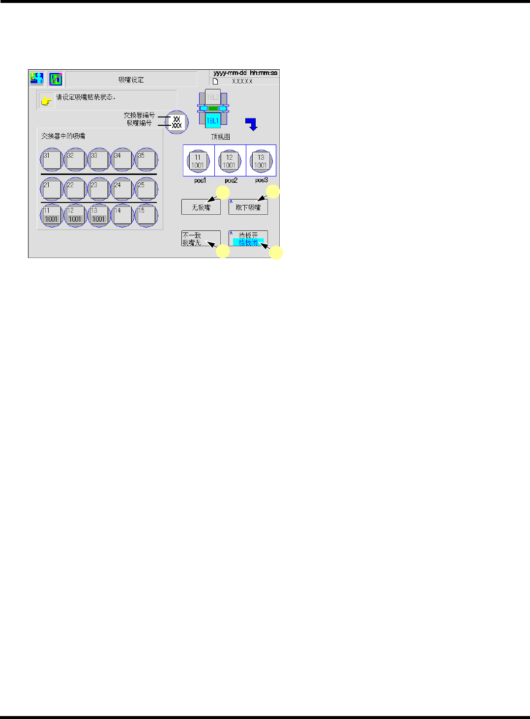 除了各吸头上的吸嘴外,还显示设置在吸嘴交换器上的吸嘴名称,并能够进行吸嘴的交换动作。