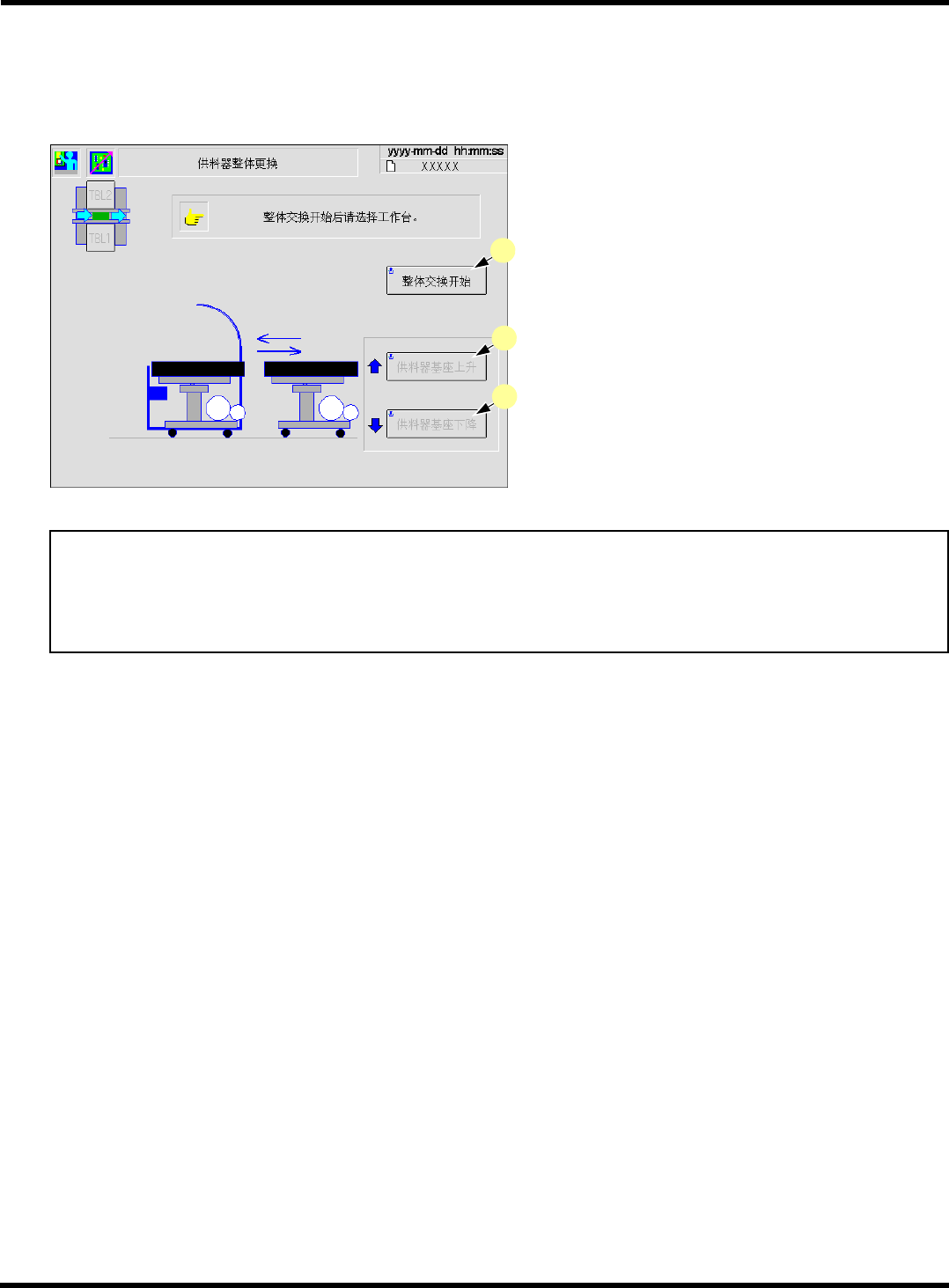 拆下连接电缆后,供料器基座有可能由于自重原因会下降。所以请在把整体交换台车从
