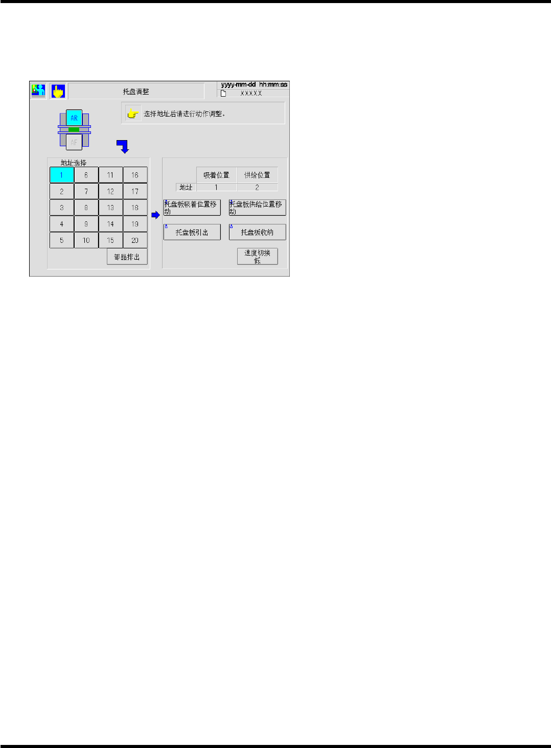将通过地址号码选择的托盘板移动到吸着位置