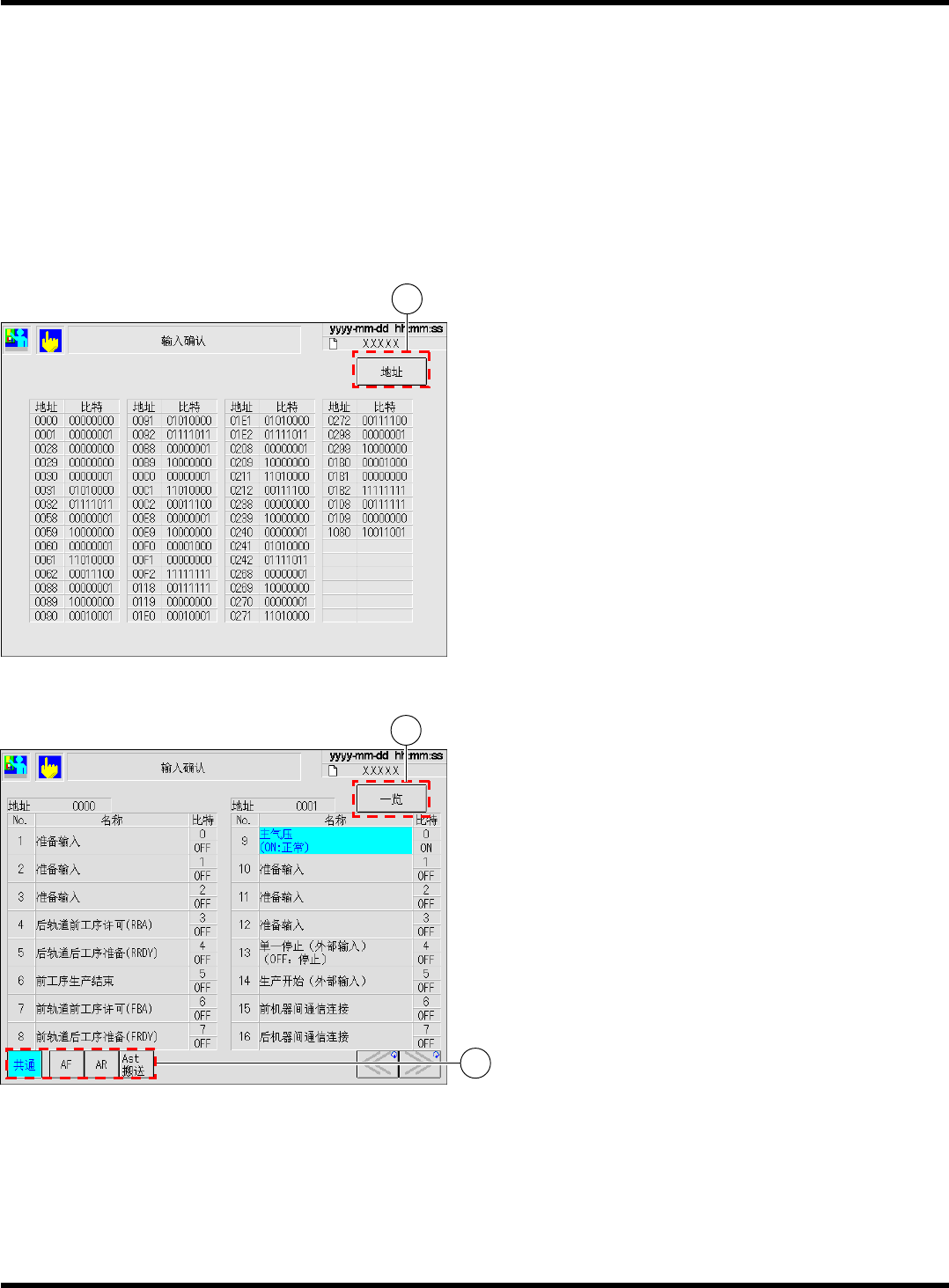 ,信息显示在地址显示和一览显示之间切换。按钮内的显示也会变化。